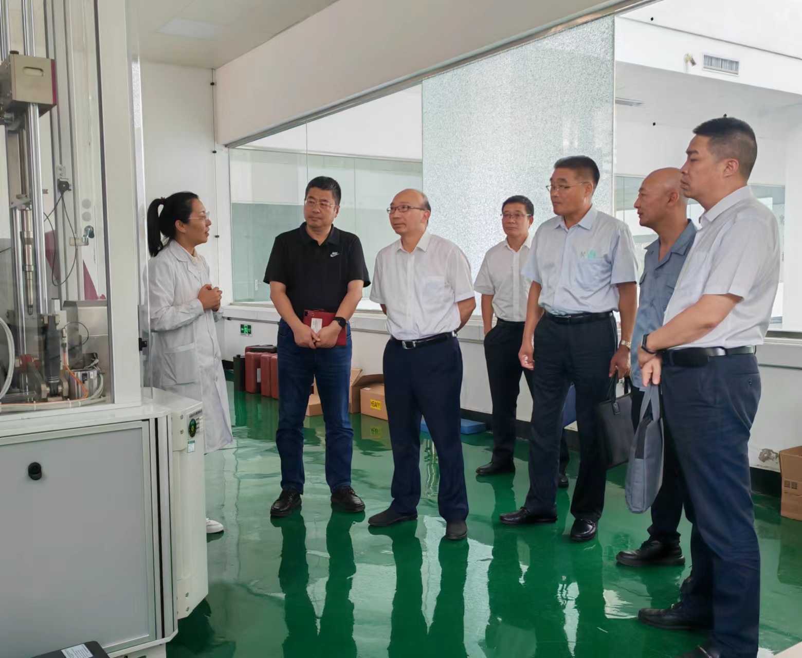 9月5日,集團(tuán)公司黨委書記、董事長丁銳,副總經(jīng)理王士華、劉承志等一行到纖維新材料研究院調(diào)研。