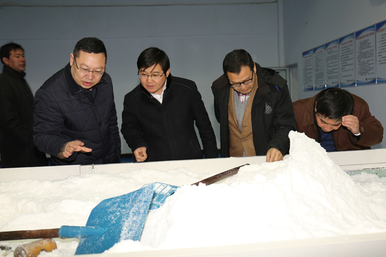 2月7日下午,江蘇省鹽業(yè)集團(tuán)副總經(jīng)理鄭海龍一行在集團(tuán)公司副總經(jīng)理?xiàng)顕屡阃碌浇饦蛑汽}公司調(diào)研考察。鄭總一行先后參觀了該公司雪花鹽車間、加工鹽車間、包裝鹽車間,對該公司生產(chǎn)環(huán)境、硬件設(shè)施、車間布局、生產(chǎn)工藝等給予了充分肯定。隨后,雙方圍繞產(chǎn)品結(jié)構(gòu)、價格調(diào)控、渠道建設(shè)等內(nèi)容展開討論,并就2018年的合作事宜進(jìn)行了洽談。