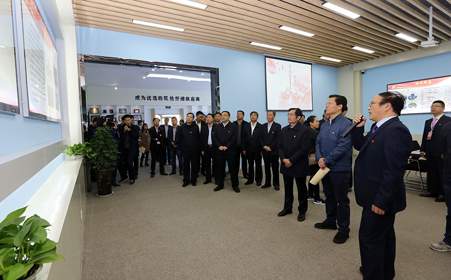 11月9日,市委組織部副部長、市黨建辦主任王玉祥,市國資委黨組書記、主任徐丙超帶隊的全市國企黨建工作現(xiàn)場觀摩活動走進(jìn)氨綸公司。市屬各國企黨委副書記、黨群部門負(fù)責(zé)人,部分省屬企業(yè)黨建工作分管負(fù)責(zé)人等參加觀摩活動。集團(tuán)公司黨委書記、董事長楊龍,黨委副書記戴鴻鳴陪同觀摩。