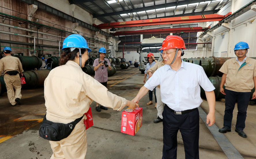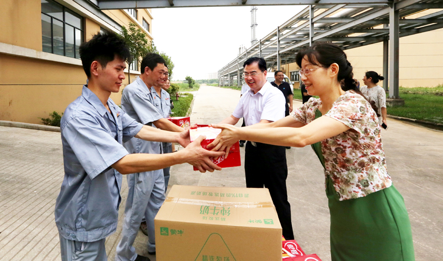 炎炎夏日送清涼,點滴關愛暖人心。連日來,驕陽似火,酷暑難耐。7月18-20日,集團公司領導楊龍、胡建明、張其海、朱天松、戴鴻鳴、汪群、匡友本等輕車簡從,分赴基層一線,進車間、入工地、到灘(田)頭,慰問在高溫下堅守崗位的廣大員工,送去綠豆、白糖等防暑降溫品,在炎炎夏日中將“清涼”送到職工心坎上。
