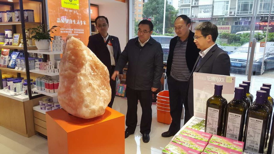 楊龍董事長一行,還現場考察了省鹽業(yè)集團公司蘇鹽生活家部分門店。