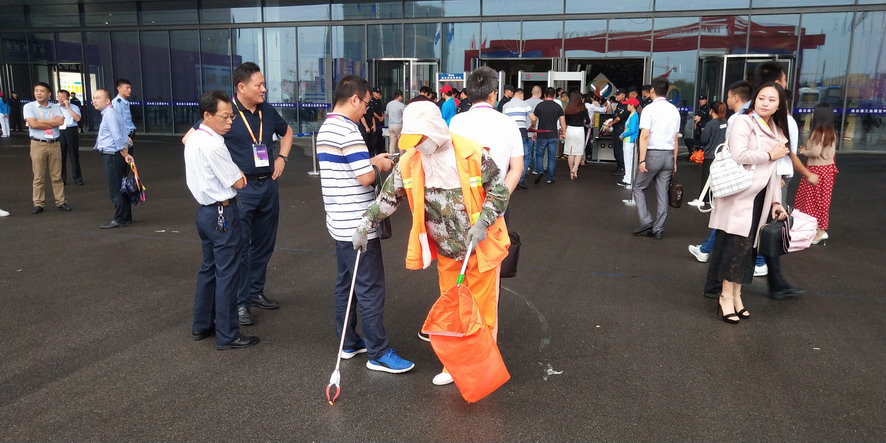 914日,連續忙碌了兩個禮拜的職工們還沒來得及休息,便又投入到“連博會”的準備工作中去。由于本屆“連博會”共有來自27個國家和地區的420家企業參展,展覽總面積達3.7萬平方米,各家展商在布置展臺時,各類生活垃圾、裝修垃圾等一度將該公司布設的100多個垃圾桶都塞滿了,在安排好人工清理的同時,該公司還安排垃圾清運車對積存垃圾進行清理清運,組織灑水車對會場及周邊道路進行沖洗,一直到918日晚上9點左右才完成準備工作。19日“連博會”開幕當天,負責現場保潔工作的職工們早上6點多就趕到了會場,冒雨在會場周邊開始忙碌,一臺大型清掃車和一臺灑水車也在會場旁隨時待命。到了中午,當展商們在室內小憩的時候,室外的職工們為了不耽誤事,站在風口匆匆地扒拉兩口混雜著雨水的盒飯,就又投入到緊張的清理工作中去。僅19號開幕當天,累計清理各類垃圾7噸左右,為“連博會”的正常召開提供了一個干凈、整潔的會場環境。