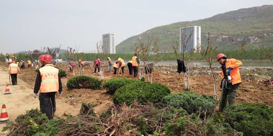 綠化工程施工緊鑼密鼓。公司承接的昌圩湖路移苗工程、242省道綠化恢復(fù)工程、江寧工業(yè)園242高速入口道路綠化補植工程、中科院環(huán)境提升改造工程等六項綠化工程,總價680多萬元,“五一”期間進(jìn)入施工關(guān)鍵期,裕升、裕欣、裕祥養(yǎng)護(hù)公司和益豐園林公司的技術(shù)骨干、綠化工人放棄假日休息,持續(xù)投入到緊張有序的施工之中,瑞泰服務(wù)公司、盛達(dá)市政公司水車、挖掘機(jī)、運輸車等機(jī)械車輛緊密配合綠化工程施工,起苗、運苗、上土、栽苗、搭架、澆水等環(huán)節(jié)緊扣,每一個作業(yè)現(xiàn)場都是一幅人頭攢動、車來人往的忙碌勞動畫面。