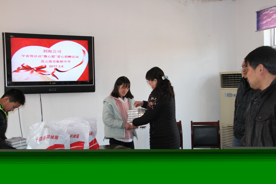 3月6日下午,利海公司按連云區(qū)“學雷鋒志愿服務(wù)月”活動內(nèi)容,主動聯(lián)系板橋中學,了解到有部分貧困學生的實際困難后,積極與學校開展圓夢“微心愿”活動,為他們送去棉衣與書籍等學生們心中的“微心愿”。