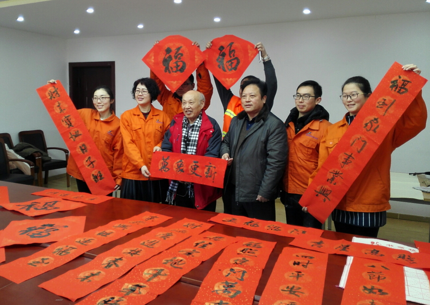 1月20日,連云港市雜文學會邀請陳鳳桐等3名知名書法家走進華茂綠化工程公司,為一線環衛職工寫春聯,送上濃濃的新春祝福!