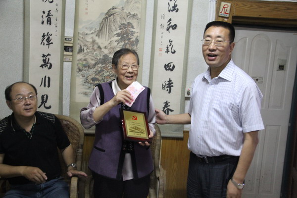 為慶祝中國共產(chǎn)黨90周年華誕,公司領(lǐng)導(dǎo)走訪、慰問了部分建國前老黨員,共話崢嶸歲月;并向他們送上慰問金和七一紀(jì)念牌,帶去組織上對老黨員們的關(guān)心和問候。老黨員梁素華同志激動之情溢于言表,動情地說:“感謝領(lǐng)導(dǎo)關(guān)懷,感謝黨的恩情……”(司宣)