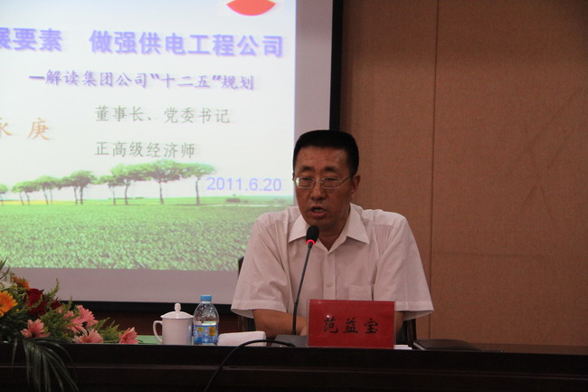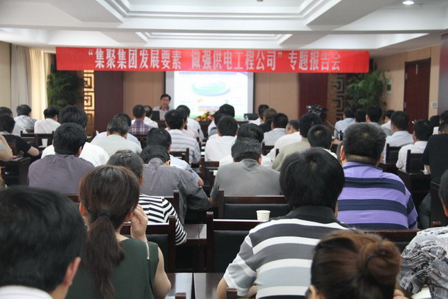6月20日下午,集團(tuán)公司董事長、黨委書記顧永庚來到公司作了題為“集聚集團(tuán)發(fā)展要素,做強(qiáng)供電工程公司”的專題報(bào)告,報(bào)告會(huì)由公司總經(jīng)理、黨委書記范益寶主持。公司領(lǐng)導(dǎo)班子及副科級(jí)以上管理人員聆聽了報(bào)告。