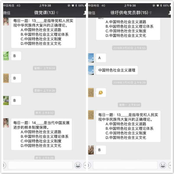 為促進(jìn)黨員更好的了解十九大精神,切實(shí)做到學(xué)懂弄通做實(shí),公司黨委充分發(fā)揮微信網(wǎng)絡(luò)平臺(tái)靈活便捷、互動(dòng)性強(qiáng)的優(yōu)勢(shì),開(kāi)展了“微考堂”“每日一題”學(xué)習(xí)活動(dòng)。公司黨群工作部每日通過(guò)微信群出題,大家搶答。題目緊扣十九大會(huì)議精神、習(xí)總書記講話精神、新黨章等重點(diǎn)內(nèi)容,并定期組織黨員開(kāi)展網(wǎng)絡(luò)答題考核,確保黨員真學(xué)真做。(電宣)