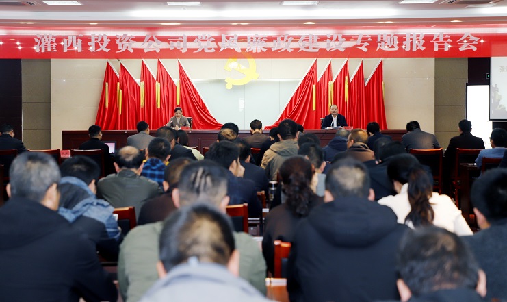 11月17日下午,灌西投資公司邀請(qǐng)集團(tuán)紀(jì)委書記汪群在機(jī)關(guān)五樓會(huì)議室為黨員干部作黨風(fēng)廉政建設(shè)專題報(bào)告。投資公司黨委書記、董事長、總經(jīng)理李國文主持會(huì)議,公司領(lǐng)導(dǎo)班子成員、各單位黨政負(fù)責(zé)人、共建單位神特、奧神紀(jì)檢人員、機(jī)關(guān)全體管理人員100余人參加會(huì)議。