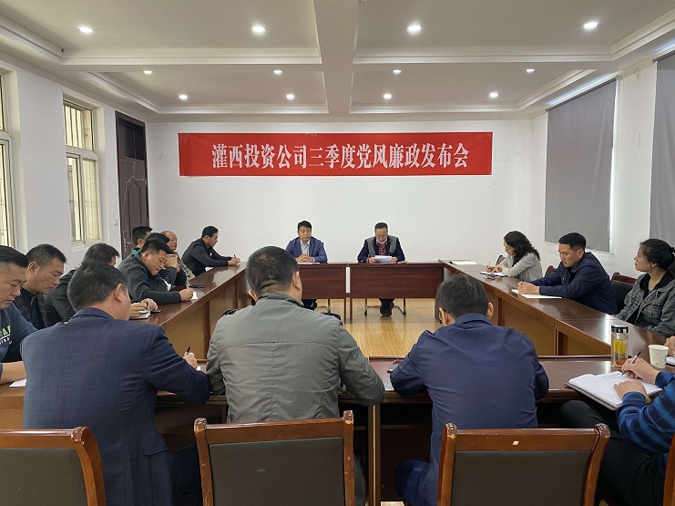 進一步加強黨風廉政建設,推進企務公開制度的落地生根,切實發揮黨員干部和職工群眾對廉潔風險的監督作用。10月22日,灌西投資公司劃分兩大片區對三季度黨風廉政建設情況進行發布,各單位支部書記、專兼職紀檢員及部分職工代表參加會議。