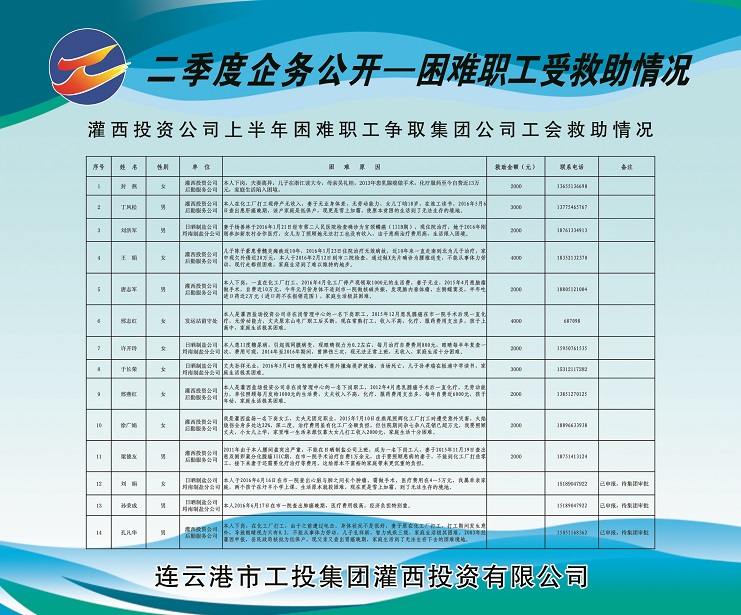 1、人員變動(dòng)情況:莊忠明同志任埒南制鹽分公司黨支部副書(shū)記,免去埒南制鹽分公司副經(jīng)理職務(wù);葛高平同志任連云港宵洋物流公司黨支部書(shū)記兼工會(huì)主席;唐建軍同志任江蘇省西旺水產(chǎn)實(shí)業(yè)有限公司副總經(jīng)理;于同剛同志任連云港市灌西實(shí)業(yè)公司制鹽分公司經(jīng)理;唐廣付同志任新河制鹽分公司副經(jīng)理,免去柴門(mén)制鹽分公司工會(huì)主席職務(wù);王忠良同志任生產(chǎn)服務(wù)公司安全員。