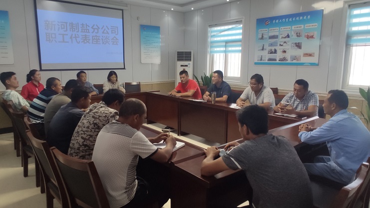 根據投資公司工會要求,830日下午,新河制鹽分公司工會在支部活動室召開職工代表座談會,參加座談會的人員有公司管理人員代表、班長代表、黨員代表、女工代表、普通職工代表。