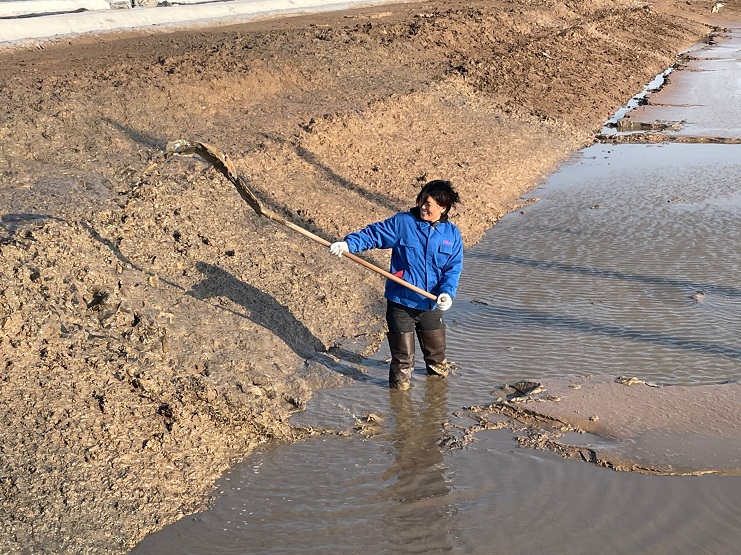 在制鹽生產一線,印象中是男人的戰場,那么和他們并肩在戰場上的女職工一定是女中豪杰。新河制鹽分公司十五班員工楊中華自2011年成為日曬制鹽員工以來,一直堅守在生產制鹽一線,憑借過硬的基本功,成為公司首位星級員工,她經常鞭策自己要堅持不懈地奮斗,活碴、扒鹽、補塑料,女人能做的她能做,撈溝、做埝、清土塘,男人能干的他也能干,是名副其實的“全面手”。一年四季,她從未穿過漂亮的裙子,工作服、安全帽、勞保鞋就是她的標配,烈日驕陽下,風雨瓢潑中哪里都有她的身影,作為女性有時確有諸多不便,但是她從沒把自己當女人看,該干的工作照干,該往前沖的她決不后退,工作早已成為了她的樂趣,看似“自討苦吃”的努力,卻讓她百煉成鋼,為了扒鹽,她連續放棄二個月陪同兒子的美好時光,全力以赴做好扒鹽工作,在班長生病住院期間,她挺身而出主動挑起班里各項事務,為班組的生產業績提供有力支撐。