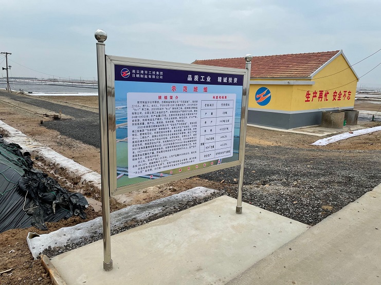 新河制鹽分公司零班,日曬制鹽有限公司“示范班組”,現(xiàn)有職工10人,男7人,女3人,于2012年12月1日建成投產(chǎn),2018年實(shí)行“9+1”用工制,2020年試行“8+2”彈性用工制。現(xiàn)隸屬日曬制鹽有限公司,主要從事工業(yè)鹽的生產(chǎn),目前班組生產(chǎn)面積27公頃,灌池24塊1440公畝,年產(chǎn)鹽量2萬(wàn)噸,主要利用淮安地區(qū)豐富的地下礦鹵資源,創(chuàng)新制鹽生產(chǎn)模式,節(jié)約土地資源,降低成本,擴(kuò)大產(chǎn)能,實(shí)現(xiàn)高質(zhì)量、高產(chǎn)出、高效益、低本低碳,節(jié)能環(huán)保。
