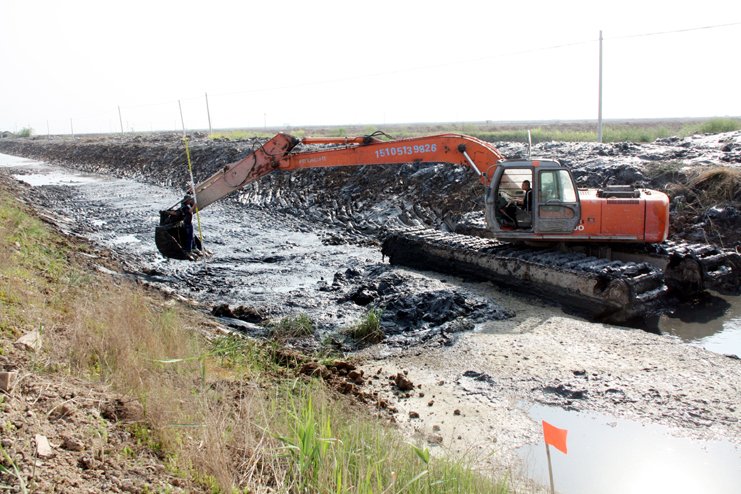 11月下旬,筆者在埒南段河道清淤現場見到了趙丹,他正在河道里嫻熟的操作挖掘機給河道清淤,一上午5個小時的工作量,一刻也沒有下過挖機,讓你仿佛看到他在從事挖機這個行走過的艱辛。