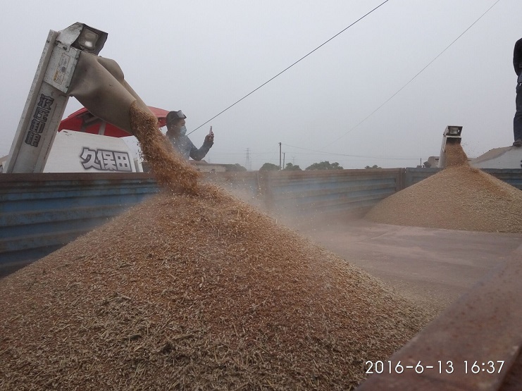 他立即會同農業分公司的全體員工,開赴地頭,搶收小麥。聯合收割機馬力開足,看著一壟壟小麥被收割完,看著一袋袋小麥被裝運上車,該公司參加搶收人員仍然忙碌著。天黑了,他們打開車燈和手提電燈,頂著高溫、忍受著蚊蟲的叮咬,目標只有一個,在雨到來前一定要完成小麥搶收任務。
