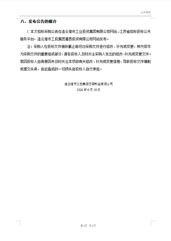 日曬制鹽公司 液體氯化鈣(鈣液)采購招標公告