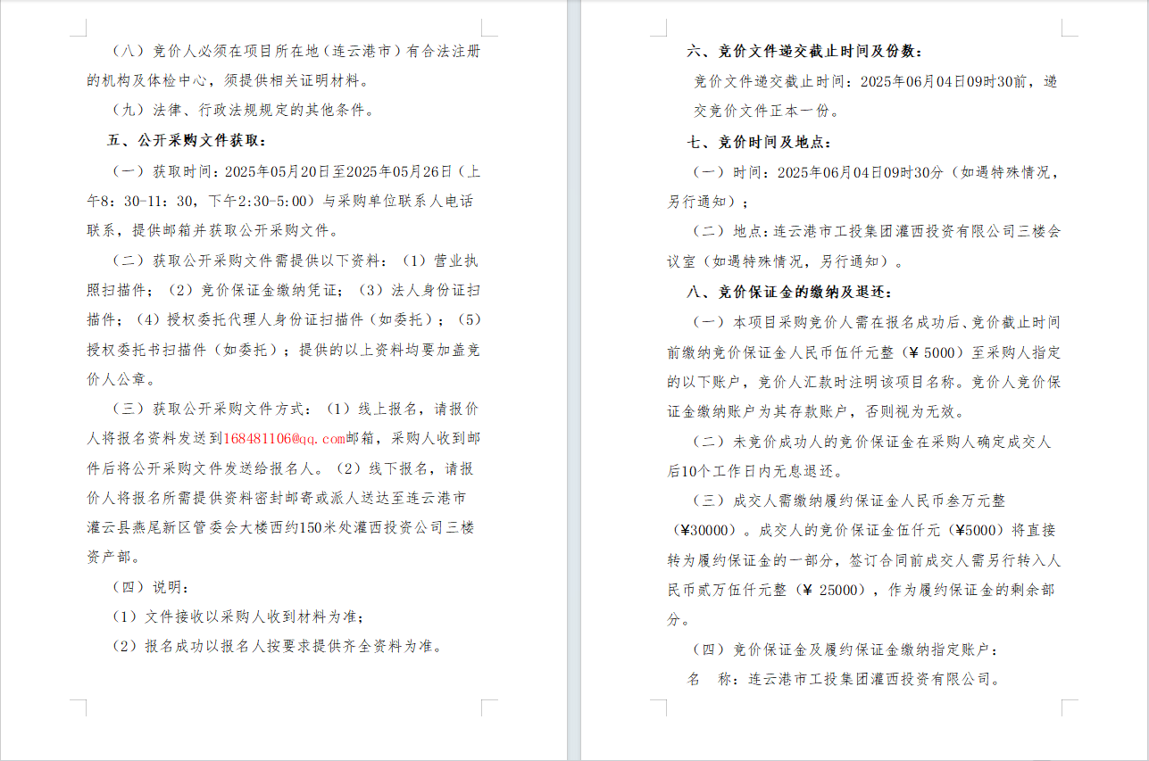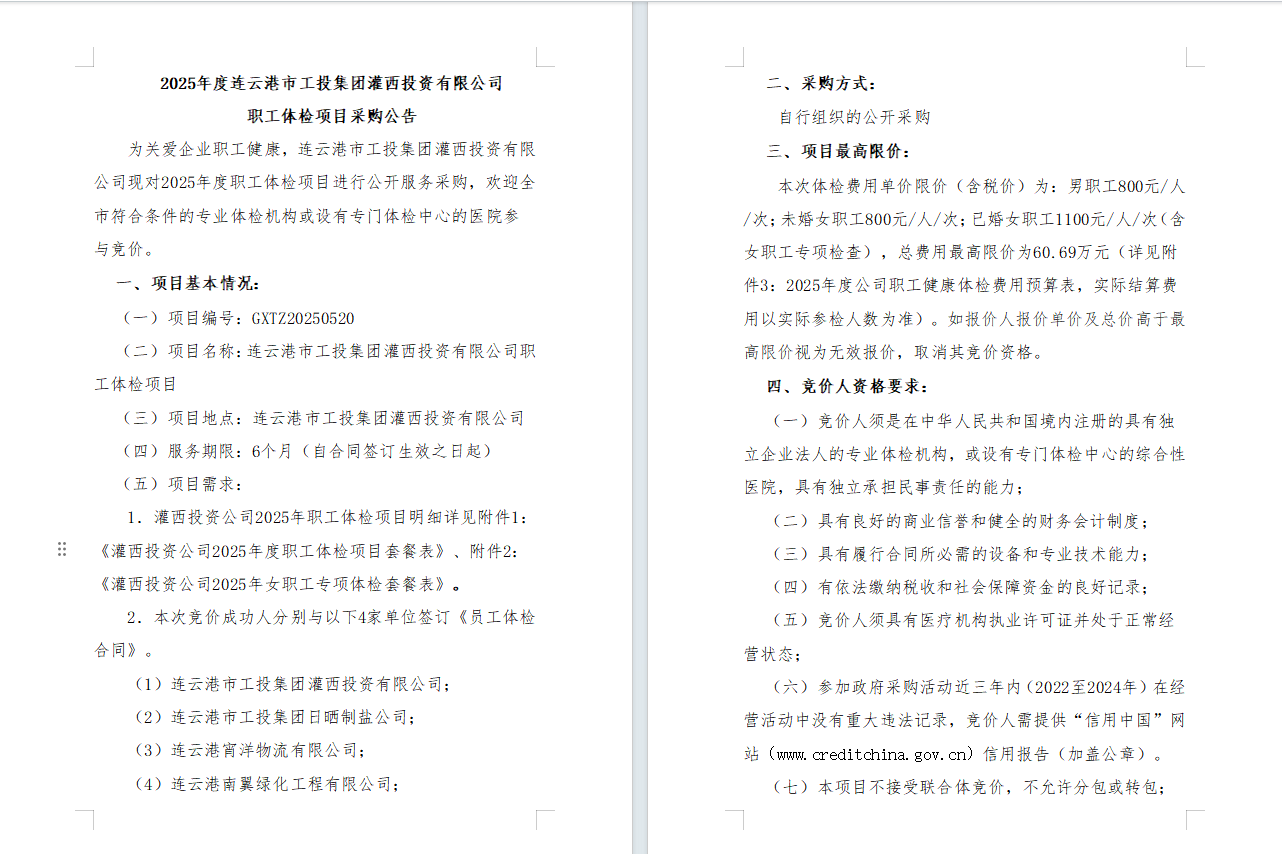 2025年度連云港市工投集團(tuán)灌西投資有限公司職工體檢項(xiàng)目采購(gòu)公告