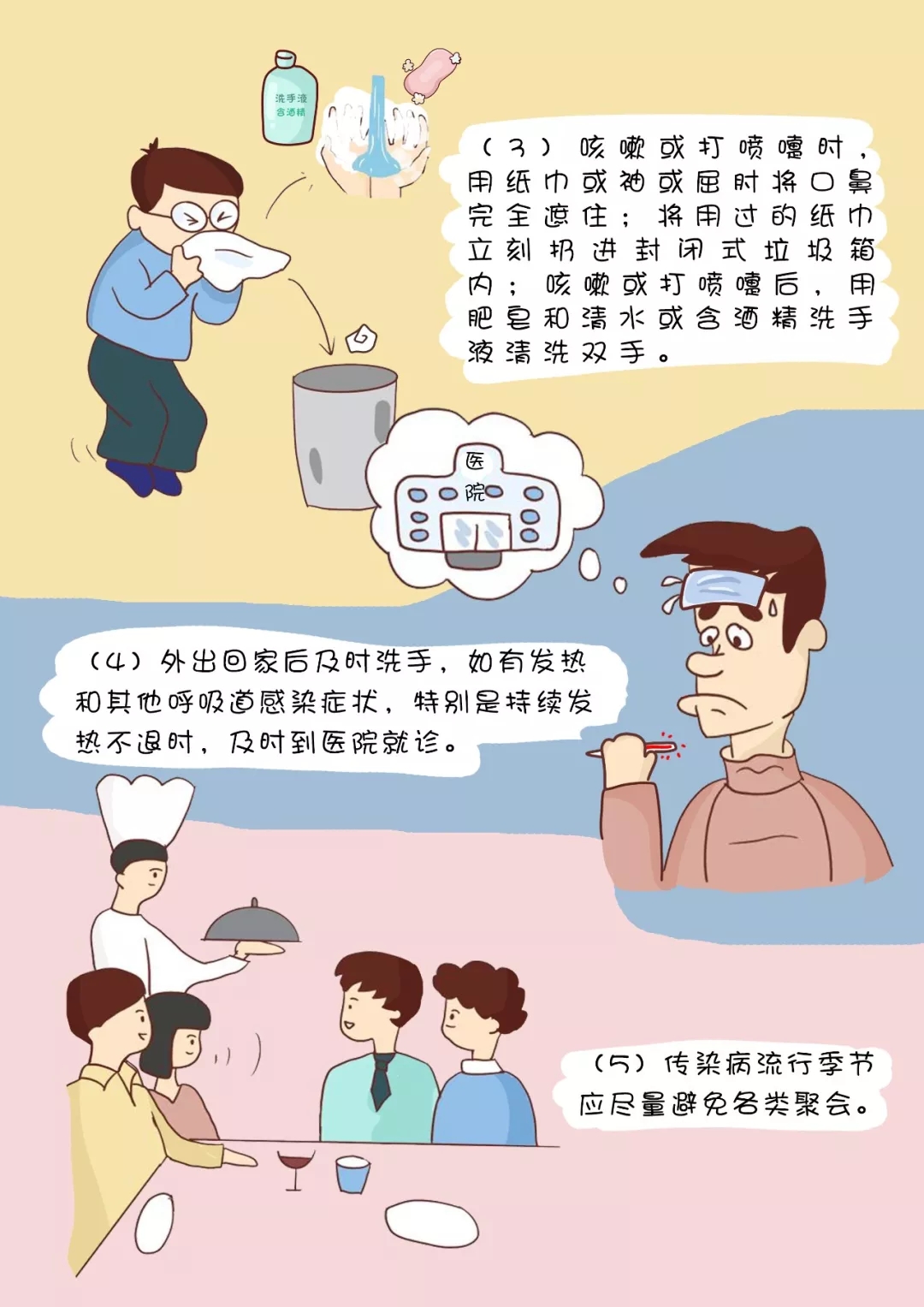 (5)傳染病流行季節應盡量避免各類聚會。
