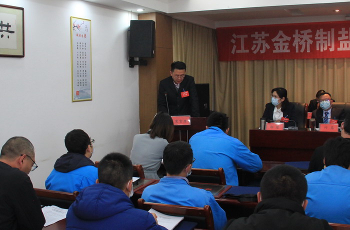 大會簽訂了《2021年度集體合同》、《2021年度經(jīng)營認(rèn)標(biāo)責(zé)任書》,與會代表認(rèn)真審議通過了總經(jīng)理工作報告,通過了大會決議、有關(guān)方案和意見。加工鹽車間、包裝鹽車間、銷售部依次作了表態(tài)發(fā)言。大會表彰了第九屆“金橋杯”勞動競賽、2020年“大干四季度”勞動競賽的先進(jìn)集體和先進(jìn)個人以及2020年度“金橋工匠”。(金宣)