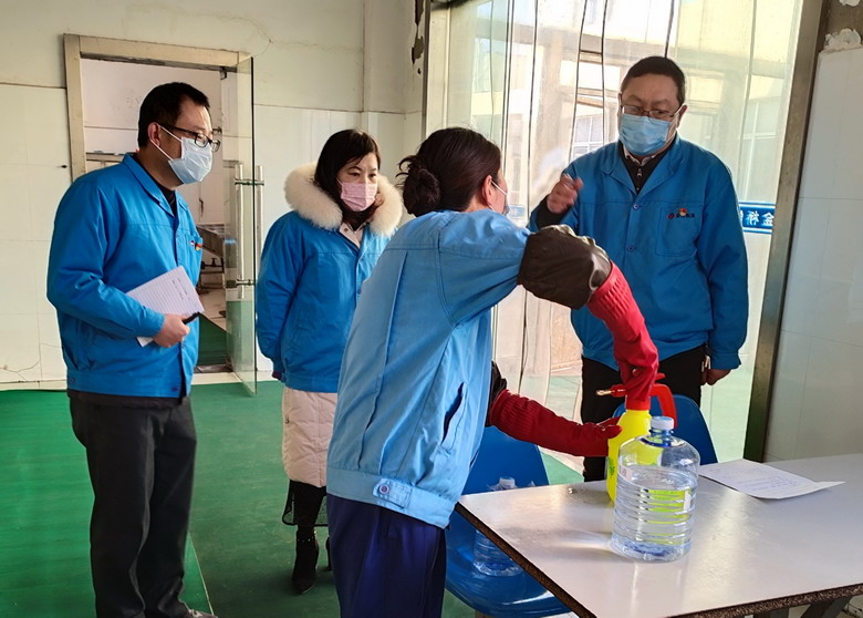 復(fù)工生產(chǎn)后,對進(jìn)廠職工進(jìn)行體溫測量,確保復(fù)工職工體溫低于37.3℃;要求所有進(jìn)廠職工必須佩戴口罩,防止交叉感染;統(tǒng)籌安排職工實(shí)行分區(qū)域、分時段就餐;每天對廠區(qū)辦公樓、車間、門衛(wèi)室、食堂等區(qū)域進(jìn)行消毒處理2次,充分做好廠區(qū)衛(wèi)生消毒工作。(金宣)