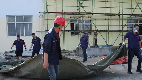 期間,共整理氈蓋塑(帆)布1000余平方、清潔廠區(qū)地面近500平方、清潔室內(nèi)墻面70余平方。(金宣)