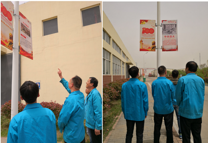 豐富學習載體,讓學習教育更添活力。公司利用廠區路燈桿這一載體,投入1.1萬元,自行設計制作黨史學習畫報120塊,內容涵蓋習近平總書記關于黨史學習教育重要指示精神、黨的一大至十九大精神以及“紅船精神”“延安精神”等黨史學習內容用好QQ及微信工作群發送“黨史百年天天讀”和“學習強國”等平臺推送的學習內容,讓黨員干群利用好碎片時間隨時學、隨地學;餐廳電視循環播放《百煉成鋼:中國共產黨的100年》《孤島32年》及紅色電影等黨史學習教育視頻,印發《兩個人的五星紅旗》等教育讀本,召開“學人民開模王繼才、做新時代奮斗者”先進代表座談會,營造濃厚的學習氛圍。