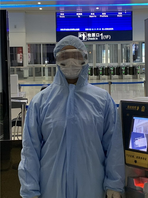 測量體溫看似輕松,但是對測溫槍反反復(fù)復(fù)的抬起放下,經(jīng)常累得胳臂酸疼。除了做好體溫檢測工作,每天還要回答成百上千名乘客的問題,維持秩序。看似簡單的話語、簡單的動作,但每天一個班次結(jié)束后,幾乎都是喉嚨嘶啞,她胳膊酸痛。因為工作的需要,幾乎每天一直都是站著工作,到家里腿都很僵硬。