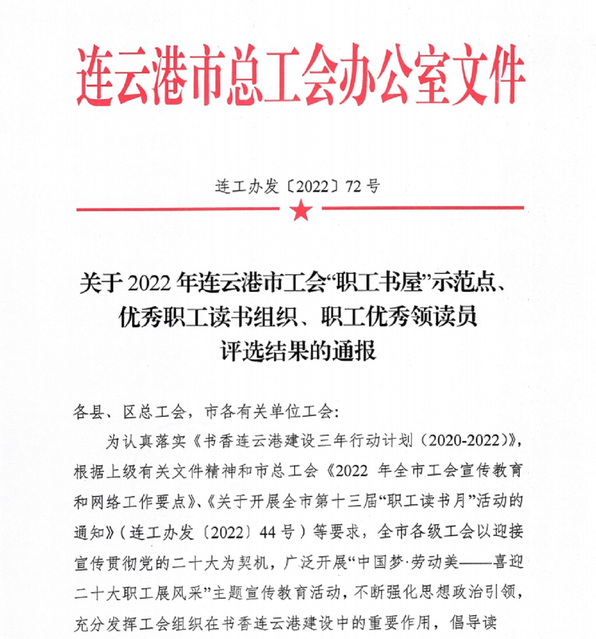 近日,工投金融板塊打造的“職工書(shū)屋”喜獲連云港市總工會(huì)授予“2022年連云港市工會(huì)職工書(shū)屋示范點(diǎn)”稱號(hào)。這是本年度全市45個(gè)示范點(diǎn)之一,也是金融板塊開(kāi)展文化建設(shè)以來(lái)首次獲此殊榮。