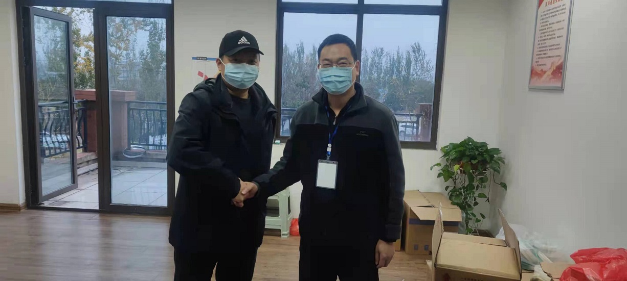 連云港市新浦街道新橋社區(qū)黨委書記史建國握著資產(chǎn)公司黨支部副書記王順友的手說“感謝工投志愿者為社區(qū)疫情阻擊戰(zhàn)所做的巨大貢獻(xiàn)”。