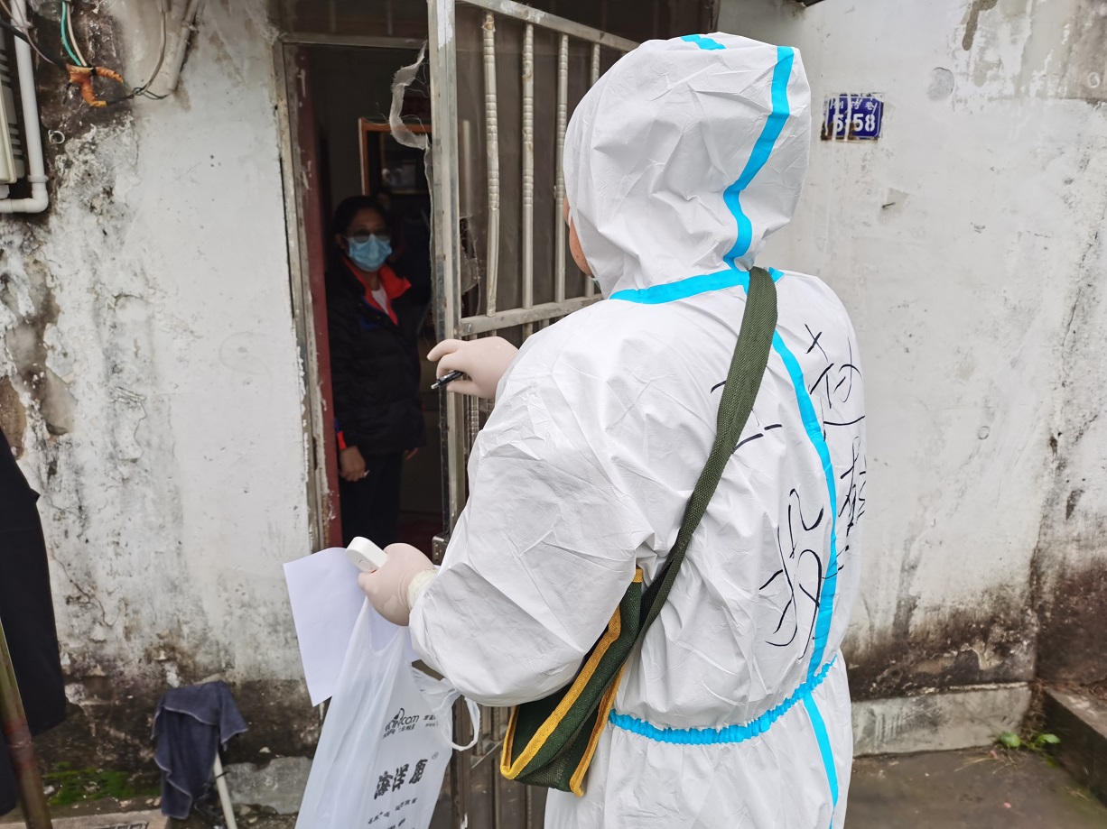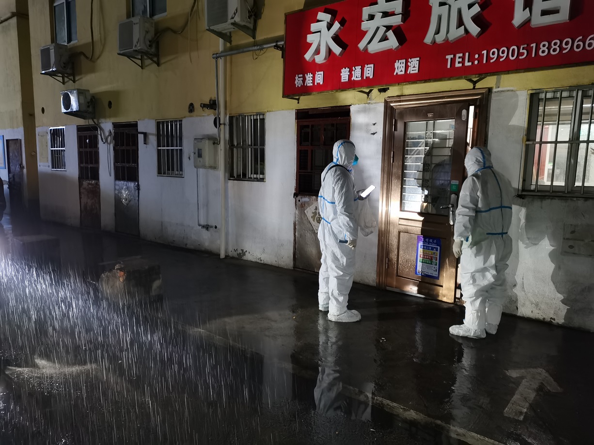 “終于完成任務(wù)了”,看著已被雨水打濕的安裝名單,工投金融板塊的三名志愿者長長地舒了一口氣。志愿服務(wù)隊(duì)進(jìn)駐當(dāng)天就按照社區(qū)的統(tǒng)一安排,立即開展了門磁安裝門磁等一線工作。由于新橋社區(qū)是本輪疫情最早的“爆發(fā)點(diǎn)”,且轄區(qū)內(nèi)多為老舊小區(qū),街巷縱橫、門牌號(hào)排列混雜,群租、合租情況普遍,外來務(wù)工人員較多,給安裝工作造成了較大難度,恰巧當(dāng)天夜里下起了大雨,雨水遮擋視線,讓原本復(fù)雜的工作更添新的困難。志愿者一邊電話聯(lián)系,一邊用手電查找街邊的門牌,經(jīng)過3個(gè)半小時(shí)的摸排,終于完成了全部的安裝任務(wù)。