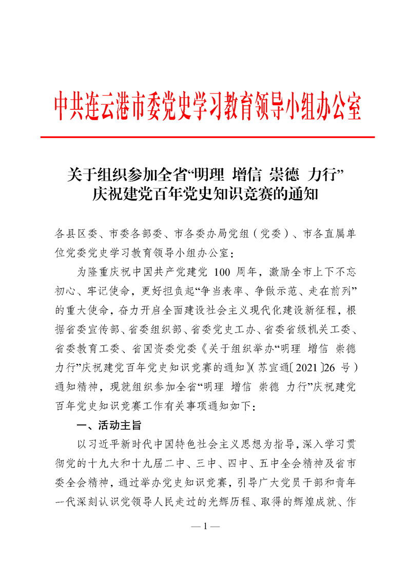 關于組織參加全省“明理 增信 崇德 力行” 慶祝建黨百年黨史知識競賽的通知