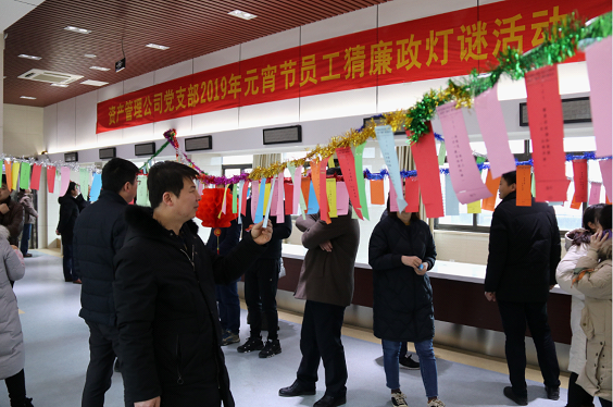 為弘揚傳統文化,豐富員工文化生活,營造文明和諧、健康向上的文化氛圍,讓公司員工在體驗文化魅力的過程中度過一個溫馨、愉悅、祥和的元宵佳節。219日,資產管理公司黨支部以“樹文明新風、倡廉潔文化”為主題,在五樓活動室舉辦2019年元宵節猜廉政燈謎活動,大家一起開動腦筋,在歡度佳節的同時,“觸摸”廉政文化、接受廉潔教育,感受著“廉政燈謎”帶來的一股浩然清風。
