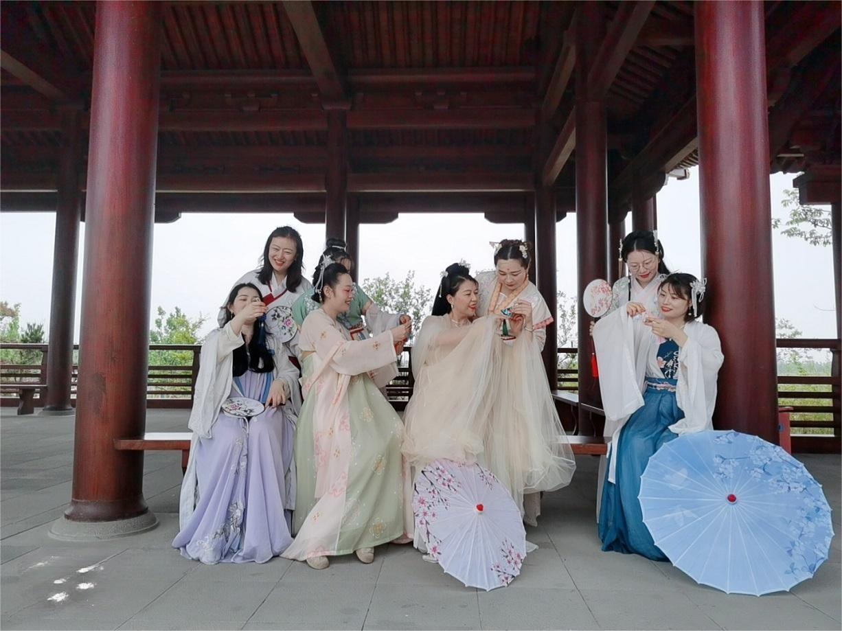 活動現場,來自金融板塊各部門的20余名員工,身著漢、唐、宋、明不同形制華美優雅、端莊秀麗的漢服,攜手起舞,漫步在園博園的各個角落,為這個現代都市帶來了一抹醉人、古樸的文化氣息。著漢服的員工們重溫古代禮儀和儀式,感受中華文化的深厚底蘊。還開展了誦讀經典、繡荷包、刺五毒、趣味吃粽子、“粽”橫四海等豐富多彩的端午主題文化活動,充分展現了員工生動的活力和熱情。在錦鯉游動、荷塘月色、彩蝶翩翩的園內,大家沉浸于濃濃的中華古風之中,用心感受著中華傳統文化的獨特魅力。此次活動展現了增強員工的凝聚力和歸屬感,為公司的發展注入了新的活力。