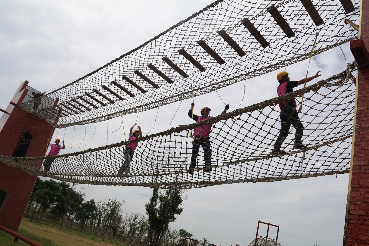 接著,四個小組先后體驗了“強渡大渡河”、“飛奪瀘定橋”等紅色實景教育項目,使廣大職工體會到當年紅軍長征的艱苦環境,感受了重走長征路的氛圍,增進了職工之間的團隊友誼、鍛煉了隊員勇于挑戰的堅強意志。