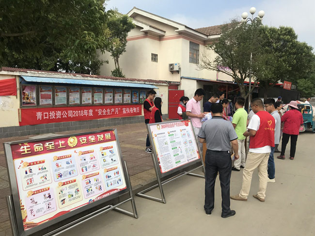 6月14日上午,青口投資公司舉行以“生命至上,安全發展”為主題的“安全生產月”宣傳咨詢日活動。張貼安全月主題掛圖12幅,展板5塊,發放《安全月主題》、《急救自救互救知識》、《用電安全十不準》、《電動車安全知識普及》等宣傳單200余張。活動現場,公司將“鹽田玉”大米作為小禮品向職工群眾發放。通過宣傳咨詢日活動以提高企業安全生產意識和廣大職工群眾安全素質,有利于宣傳安全文化、安全生產管理制度、事故預防與處理及安全技能知識,更有利于宣傳企業在開展安全建設與管理過程中形成的優秀成果,為企業營造潤物無聲的安全文化意境,讓職工群眾深受教育、感悟常新。 (安技部)