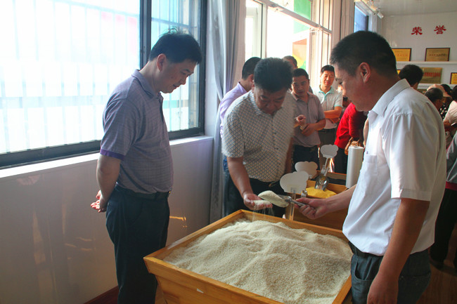 展銷中心主要展示銷售公司“鹽田玉”系列產品,清香米、富硒米、喜米等不同種類規格大米均在展銷之列,極大方便了周邊居民選購。