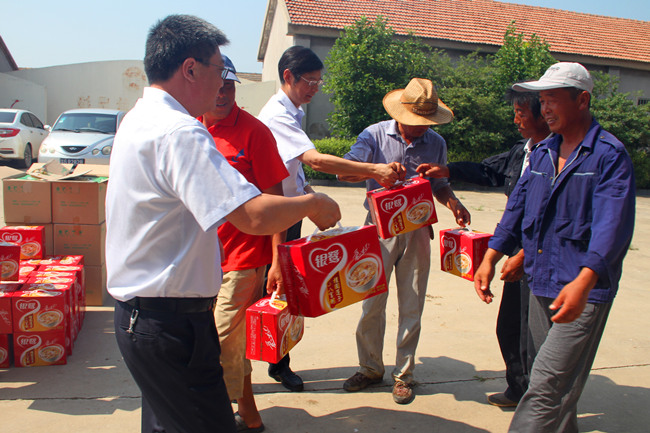 7月20日上午,集團(tuán)副總經(jīng)理張其海、總會(huì)計(jì)師匡友本來我公司大新農(nóng)場(chǎng)、生態(tài)種養(yǎng)中心走訪慰問拼搏在農(nóng)業(yè)種養(yǎng)一線的基層職工,為他們送上綠豆、白糖、牛奶及八寶粥等防暑降溫品。投資公司董事長(zhǎng)、黨委書記胡傳法、黨委副書記、副總經(jīng)理史祥平、副總經(jīng)理周緒祥陪同慰問。