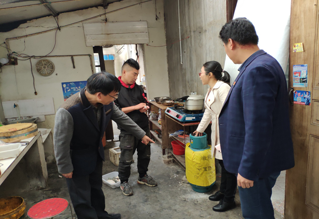 20191014日上午,服務中心聯合社區工作人員對轄區餐飲店進行液化燃氣安全專項檢查,仔細檢查液化氣鋼瓶、管道、減壓閥及燃氣灶安全使用情況,要求從業人員一定要按照規定操作流程正確使用燃氣設備,并告知他們對銹蝕、過期、老化的燃氣設備部件必須及時更新更換,以確保用氣的安全。(徐永平)