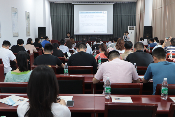 副總經理嚴成采用PPT作報告的形式,詳細講解了超高分子量聚乙烯纖維產品性能、應用領域等。(神特宣)