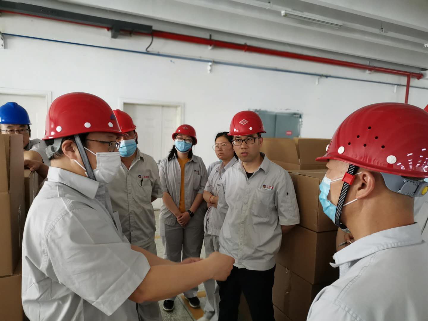 5月25日上午,公司領導班子到二期車間成品絲卷繞區現場辦公,集體會商,研究解決生產難題。