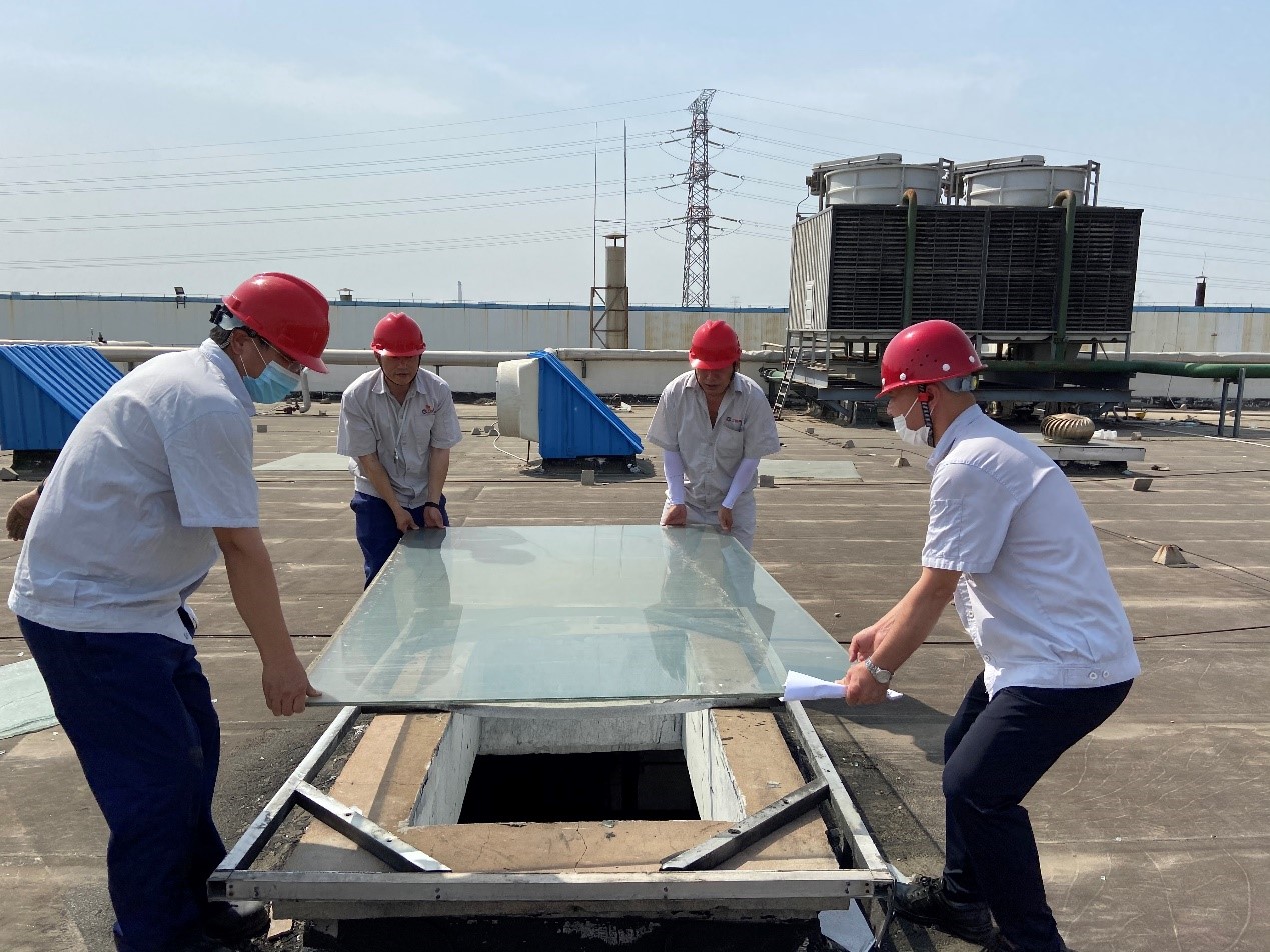 檢查過(guò)程中,總經(jīng)理韓立新發(fā)現(xiàn)部分天窗玻璃蓋板有破損,當(dāng)機(jī)立斷,頂著炎炎烈日,率先搬起備用玻璃蓋板,動(dòng)員安委會(huì)成員一起更換天窗玻璃蓋板,及時(shí)消除安全隱患,筑牢安全防線。艷陽(yáng)下燙手的玻璃,燙著韓總等安委會(huì)成員的手,但溫暖著一線員工的心,切實(shí)感受到公司對(duì)員工生命安全重視。