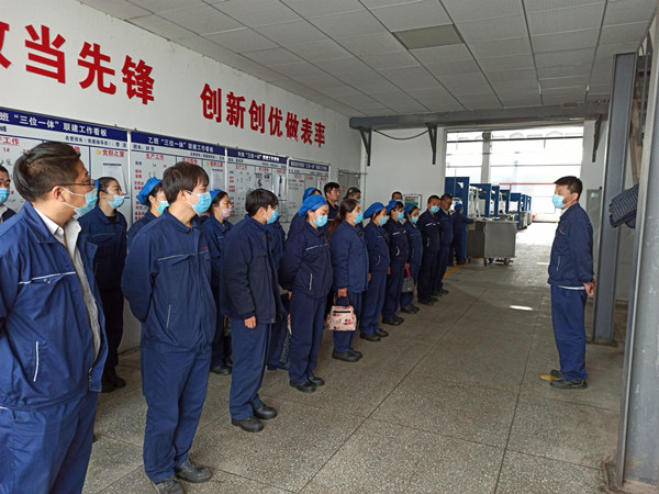 為加強規范化管理,近日,公司制定生產班組班會開會流程,規定班組員工按指定區域點位有序站好、著裝整齊、動作劃一。通過該項措施,有效改善生產班組員工開會時“松、散、懶”形象,提起振奮,提勁實干。 (安全管理部 徐宏亮)