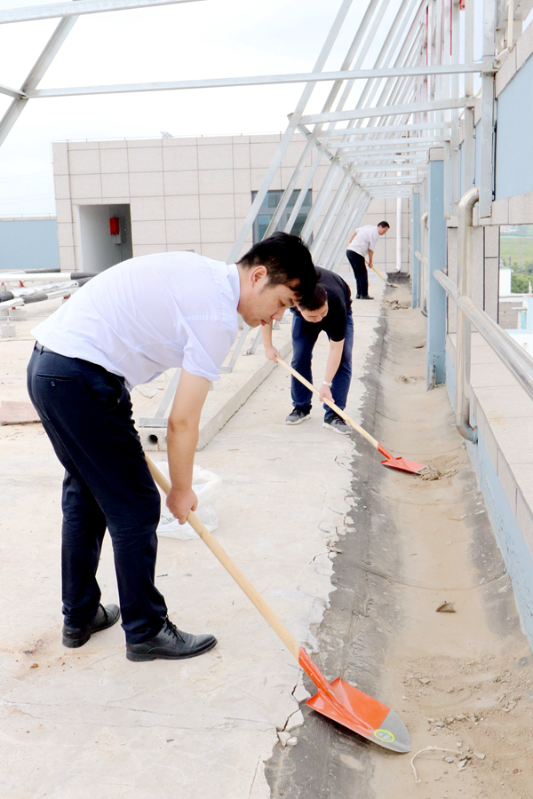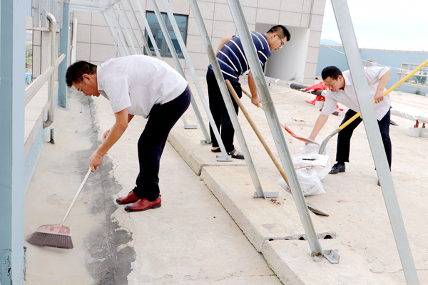 為凈化、美化公司辦公樓樓頂環(huán)境,消除積水隱患,8月26日上午,公司組織黨員、團(tuán)員青年志愿者開展了專項(xiàng)清理整治行動(dòng)。志愿者不畏艱辛,對樓頂進(jìn)行了細(xì)致清掃,認(rèn)真疏通排水口,力爭陰雨天氣不再出現(xiàn)積水現(xiàn)象。(神特宣)
