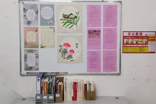 走進我們的物檢室,這是熟悉的不能再熟悉的地方,一進門,一個小小的變化就驚訝到我了,眼前一亮。原來在我的強力機前面的墻上掛著一個白板,白板上貼著我們部門員工的各種作品,分為三塊,左邊是五張?zhí)圃姇ǎ疫吺枪揪W(wǎng)站登出的六篇文章,中間則是我們部門才女張云的兩幅畫,特別是橘紅色那一抹,使得整個版面亮起來了。真不知道我們的才女怎么那么有才的?