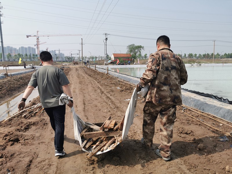 火紅的五月,奮斗是最鮮明的底色,汗水是最美麗的音符。為了搶抓天時,確保春季生產工作能夠順利開展,來自機關部門和臨達、海州灣等公司的20位“突擊隊員”放棄周六休息,來到大浦工區先鋒東灘協助灌池工作。